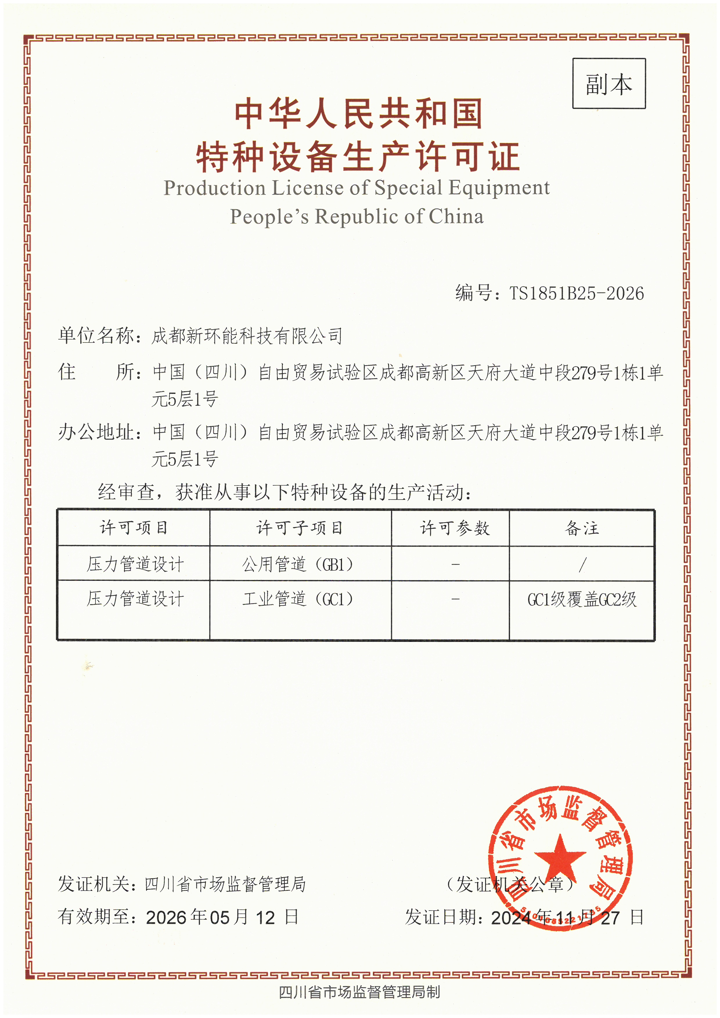 中華人民共和國(guó)特種設(shè)備設(shè)計(jì)許可證